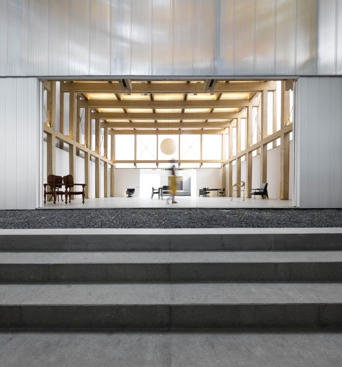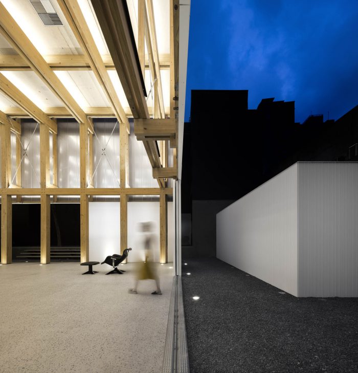 Contrasting with the “straightness” of the metal structure of Vol.A and the brutalist exposed concrete of Vol.B, Vol.C seems to float off the ground gently, like a Japanese lantern.