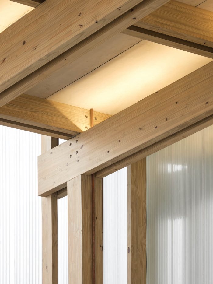 对于光亭的建造,工作室采用了木质结构系统,延续了studiomk27最近对该主题的研究,并适合于干净和快速的施工。