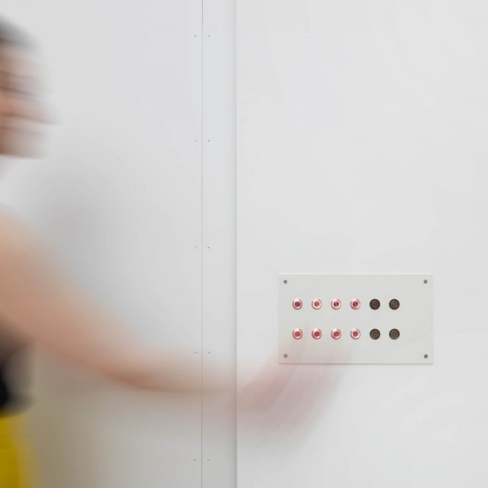 对灵活方案的需求导致了内部空间的创建,允许几种可能的用途:商店、展览空间或受邀艺术家的临时住所,在一个适合空间内部的大篷车上。由此产生的空间是一个15x15米的平面图,天花板高度为7.5米。一个Isamu Noguchi的吊灯点缀了空间的双重对称性,并探索了其垂直维度。