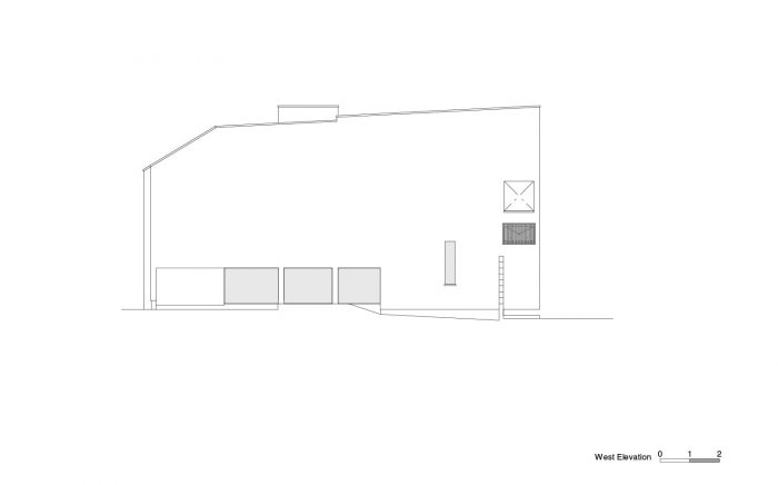 入口处从右侧带有植物的阶梯式石板路进入,然后沿着楼梯进入浮动的建筑内。从禁止任何施工的场地边界后退1.5米的地方被用作花园带。通过让它从一楼的起居室、餐厅和厨房空间可见,我们让这个有限的空间有了扩张感和多样化的视野。