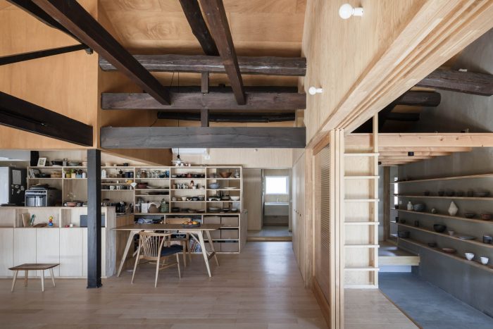一家四口的房子:一个陶工、一个厨师和他们年幼的孩子。客户决定购买并翻新一座带茅草屋顶的Minka(旧日本风格的房子),作为新的生活基地在冈山居住。