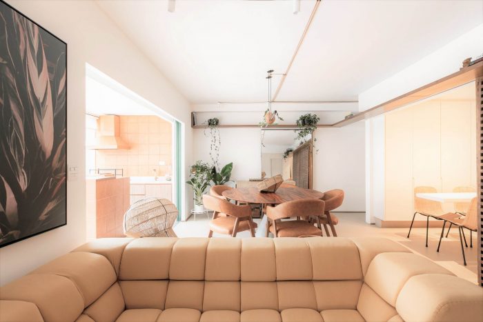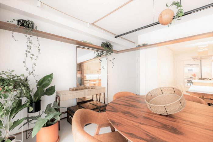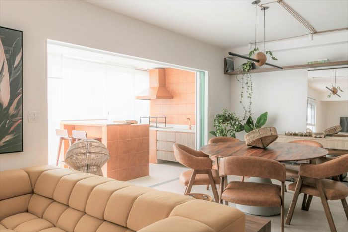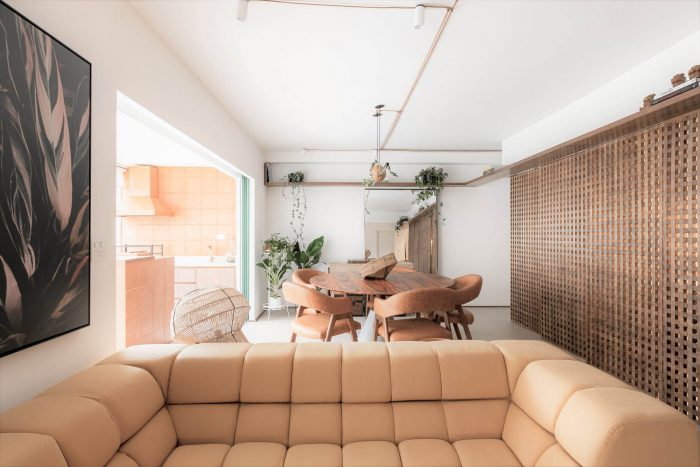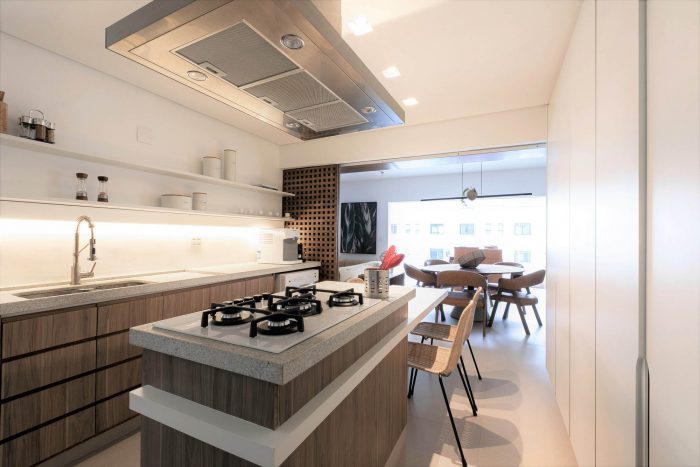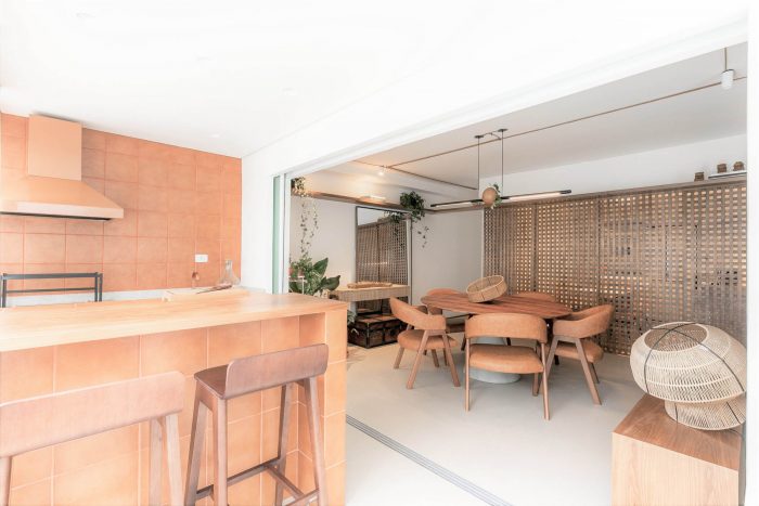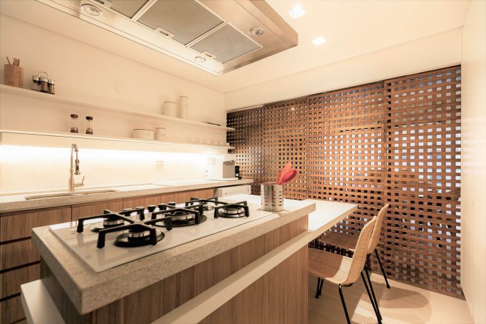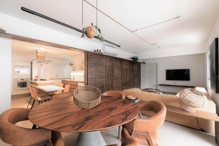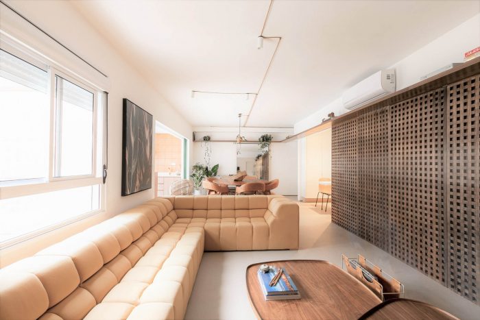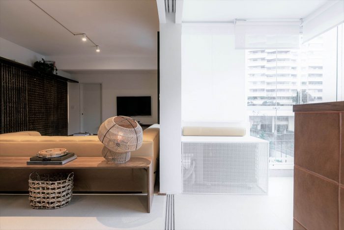Muxarabi is the protagonist, art in Brazilian elements, materializes the possibility of handcrafted joinery, coexisting in the metropolis with all the innovation we have today in architecture and interiors. It is a functional background, which articulates the accesses and consolidates the versatility of the space.