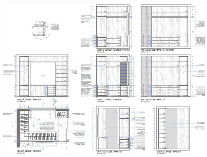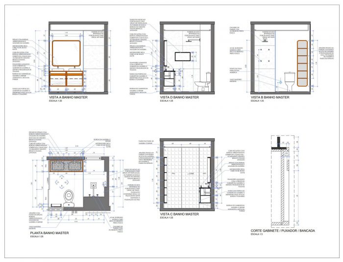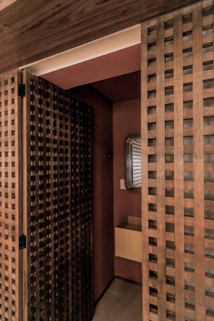 Guidelines that create an integrated environment with different possibilities and scenes. This main and sculptural element of Muxarabi in the room, is full of meaning, as a symbolic tool, have purpose in the function. Works in different opening systems; pivoting door to the toilet; sliding doors that integrate kitchen and living room, office and home.