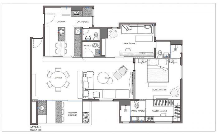 Muxarabi是主角,是巴西元素中的艺术,将手工制作的可能性具体化,与我们今天在建筑和室内的所有创新共存于大都市。这是一个功能性的背景,它阐明了通道和巩固了空间的多功能性。