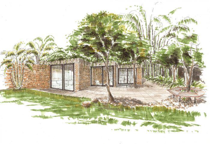 The existing materials, brick and concrete, were kept and also used in the new extensions.