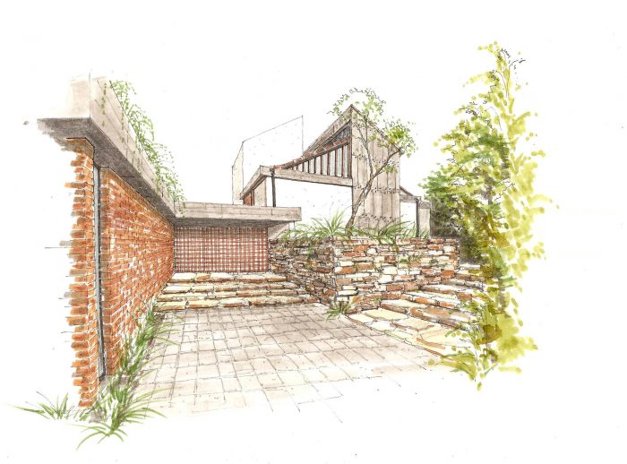 现有的材料,砖和混凝土,被保留下来,也被用于新的扩展。