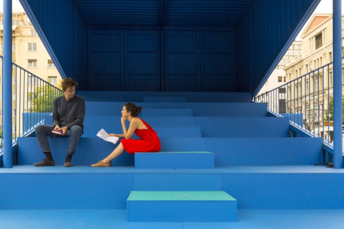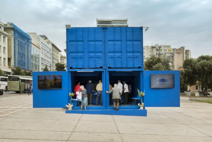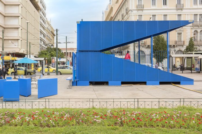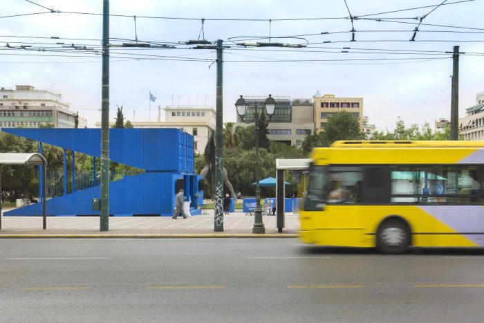 The first site for the Mobile Podium was found on Klafthmonos Square in central Athens. A temporary structure by nature, it provided the required interior space that acted as an information center to meet its programmatic needs. It enriches the public space with an ascending gathering space. Eventually it became an open-air auditorium. A platform for gatherings, debates, lectures and the exchange of ideas. It formally distinguished itself from the surroundings by becoming an oddly shaped landmark with very functional origins. A beacon of remarkable attraction that serves its purpose as a meeting point.