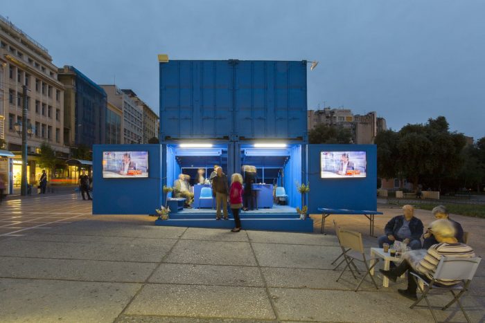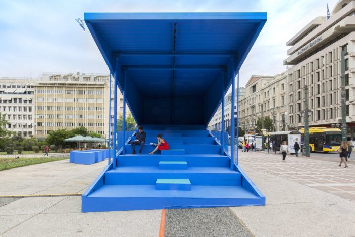 移动平台的第一个地点是在雅典市中心的Klafthmonos广场。从性质上看,这是一个临时结构,它提供了所需的内部空间,作为一个信息中心,以满足其项目需求。它以一个上升的集会空间丰富了公共空间。最终,它成为一个露天礼堂。一个聚会、辩论、讲座和思想交流的平台。它在形式上与周围环境区分开来,成为一个形状奇特的地标,具有非常实用的渊源。一个具有非凡吸引力的灯塔,作为一个聚会点发挥着它的作用。