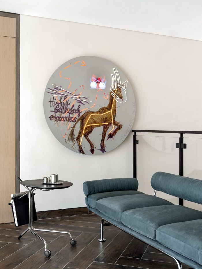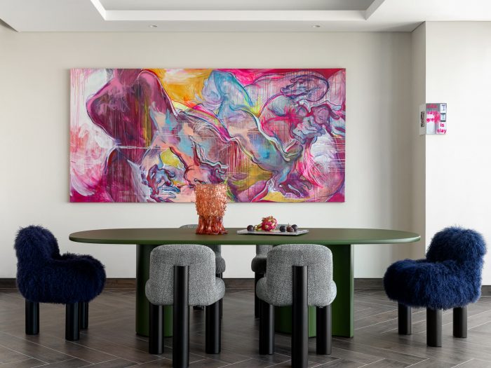 设计师 为这个项目工作了将近一年,精心策划了一系列年轻艺术家的作品,这些作品反映了我的愿景,不仅通过清晰的色彩光束,还通过主题深度和潜台词相互交融。