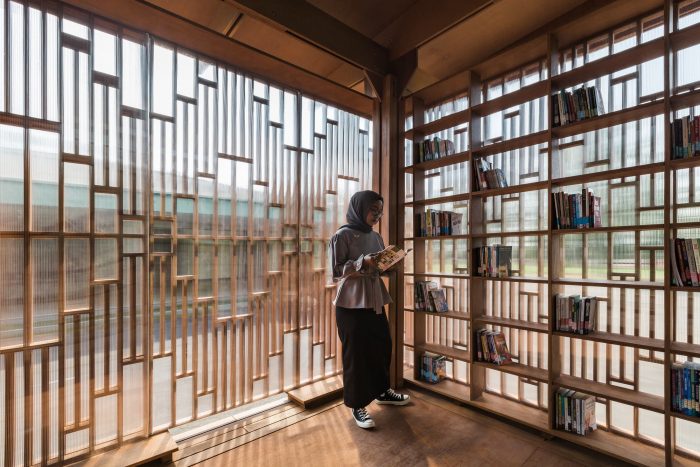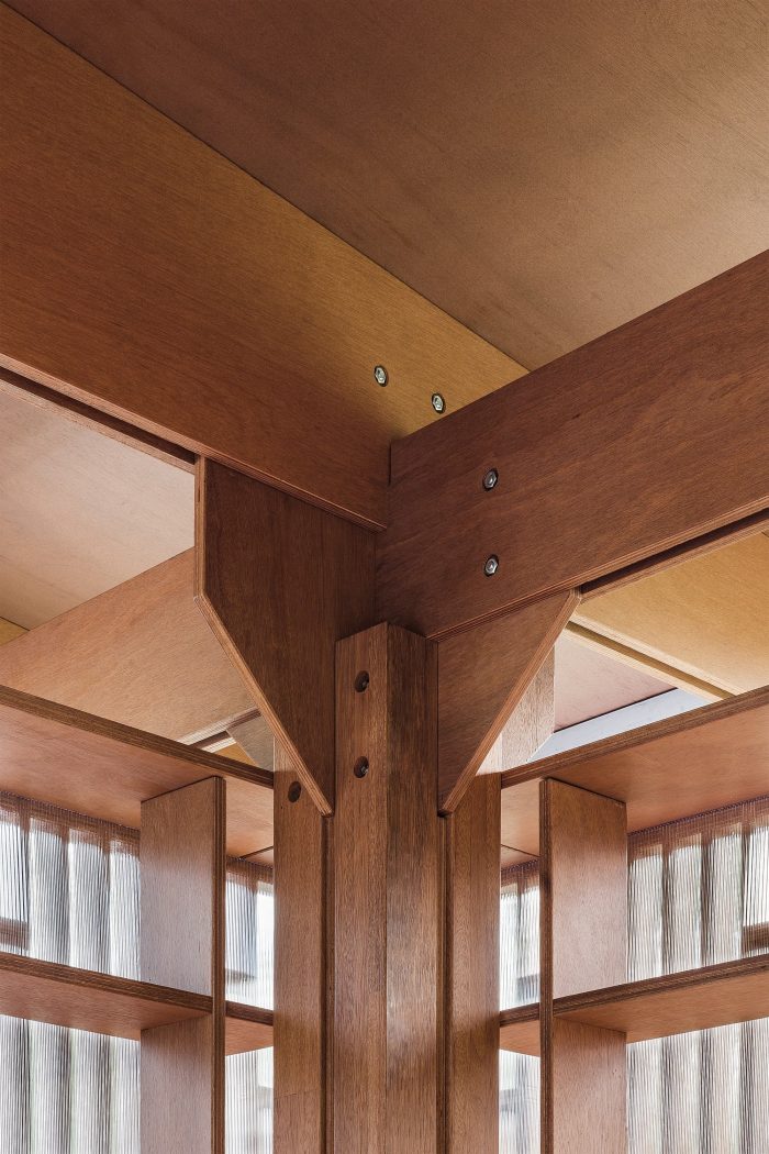 Microlibrary MoKa (Modular Kayu) was developed with the idea of cost efficiency, and prefabrication, to be delivered as a flat-packed building system on-site to be assembled with minimal impact in a short time. The building modules are based on plywood boards as a basic measurement to avoid cutting and wasting materials as much as possible. Several of the modules can be arrayed and arranged to form larger configurations according to functional needs.