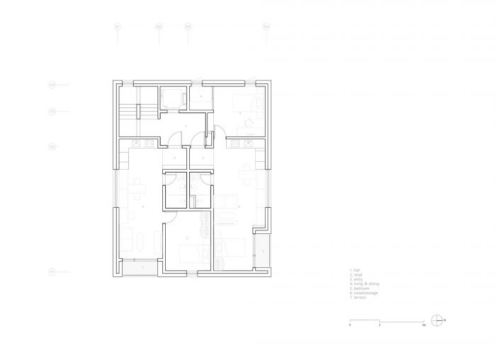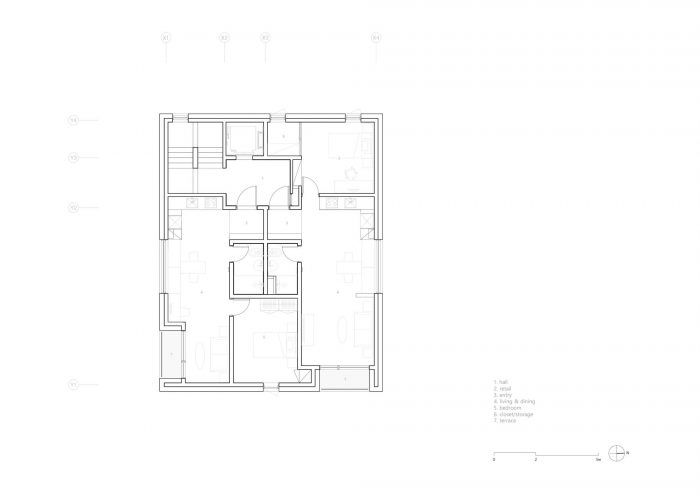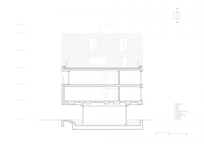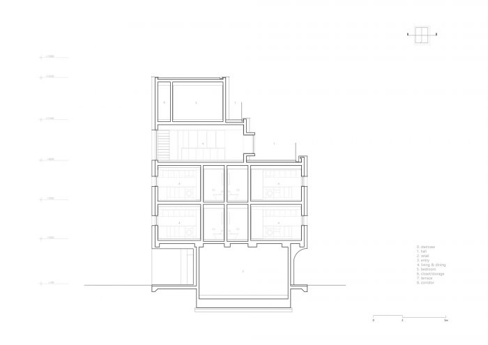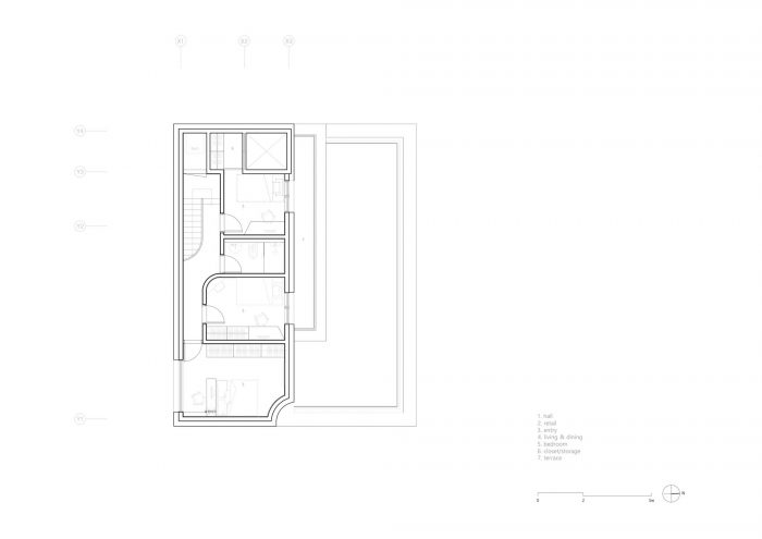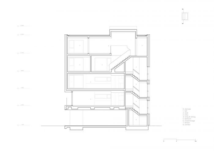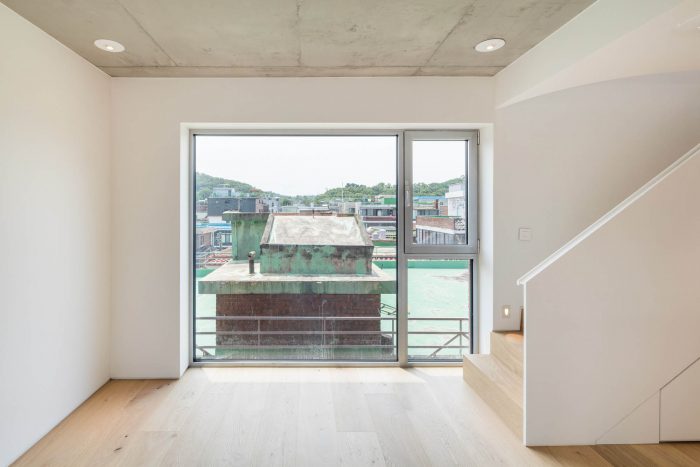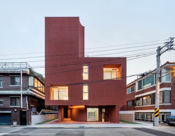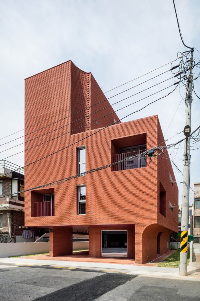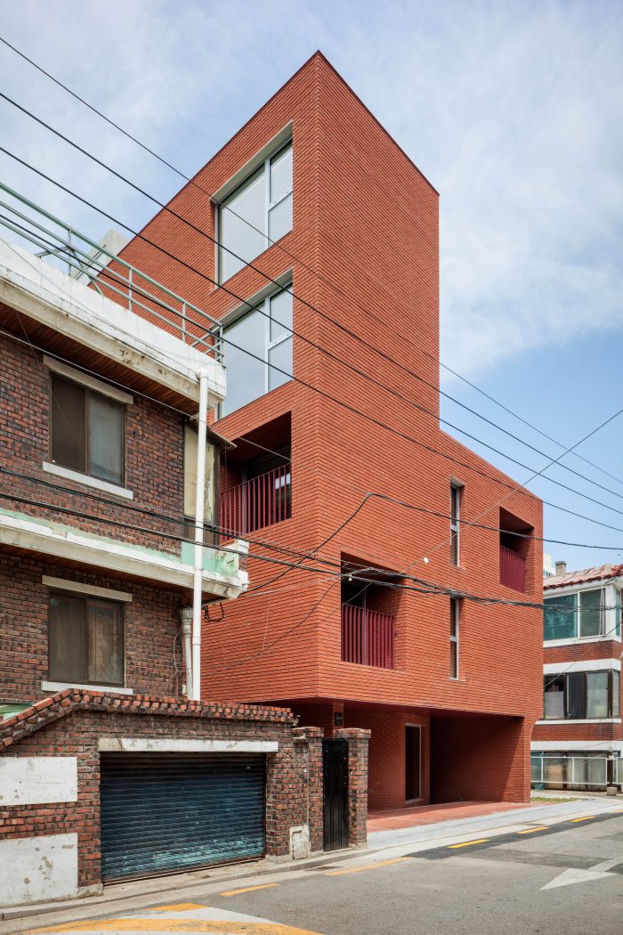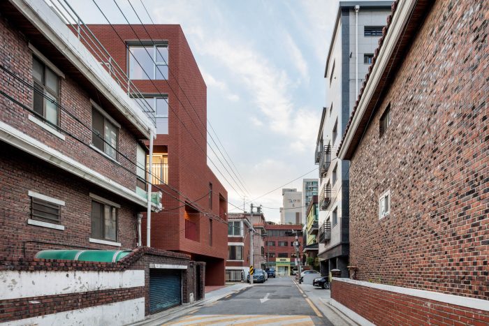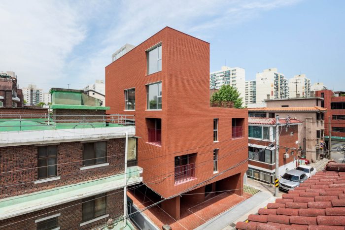 Located in a residential area in downtown Seoul with physical regulations that create fundamental environmental constraints, project ‘MOTTAGI 99’ (The word ‘mottagi’ means cutting off a corner: chamfering) blurs the many rigid boundaries of the surrounding area. It leaves a new gap in the standardized urban landscape. This project started with a question about the typology of urban housing, which has become the result of a combination of urban regulation and individual profit desires against it. ‘MOTTAGI 99’ is a five-story multi-family housing for five families and with retail on the first floor.