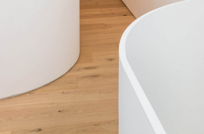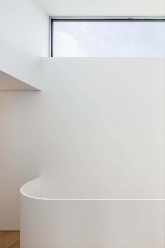 The ‘variation of chamfering’ of the mass continues inside, and it is further amplified in the 4th and 5th-floor residences where the client’s family lives. Stairs lie through the gap in mass, and light flows in from the curved ceiling creating abundant context and texture. The parts that are pushed hard or boldly removed from the outside become a private terrace for each housing, allowing them to have a comfortable distance between surrounding neighbors.