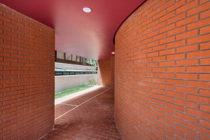 Within the limited site, the first floor reorganizes the density fiercely, solving various required distances by law including entrances, parking, etc.