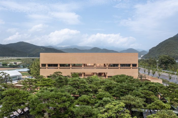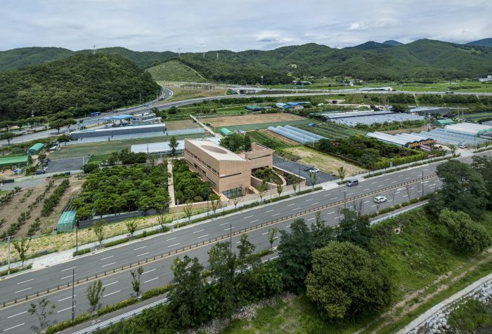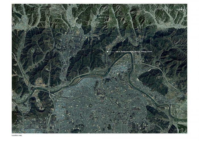 Conditions of the Site - MRNW Daegu is a project that transforms an inherited landscaping tree farm cultivated by the client’s father in the past, into a new space. The site located on the northern border of Daegu was designated as a restricted development area and used as a landscaping farm for 20 years. The south side of the site faces Donghwacheon-ro (two-way six-lane road) and the north side faces Hoguk-ro (one-way one-lane road). Donghwacheon-ro is about 2.3m higher than the site level. The boundary of the site facing Hoguk-ro was made of a farm fence and pine trees over the fence. When the project launched, the site was full of landscaping plants that the client’s father had grown for 20 years with his affection for trees and also for sale. An old garden was in an expansive lawn yard and five warehouses were arranged around it, in front of the management housing.