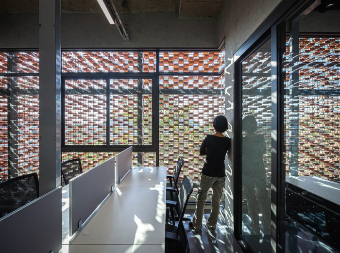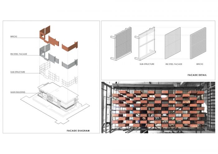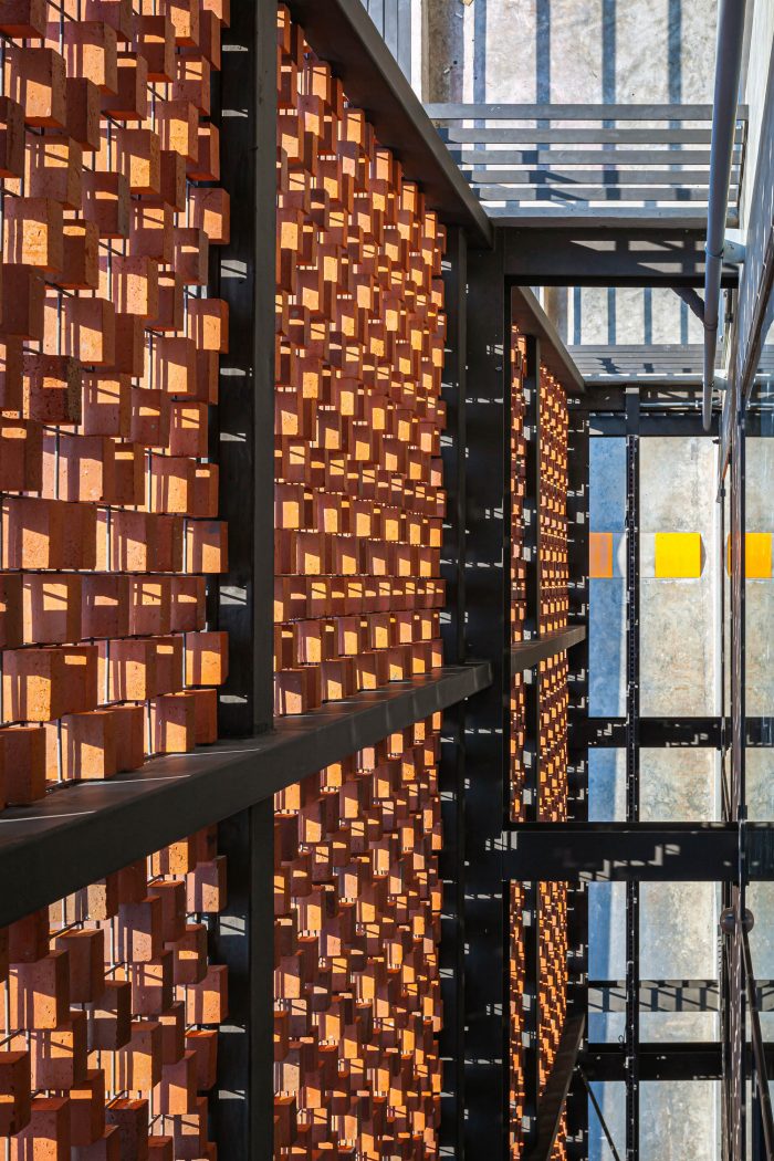 For the facade, we use 50,000 bricks to create a self-organization facade, allowing nature to control the appearance of the brick which later, will become a characteristic of the building.