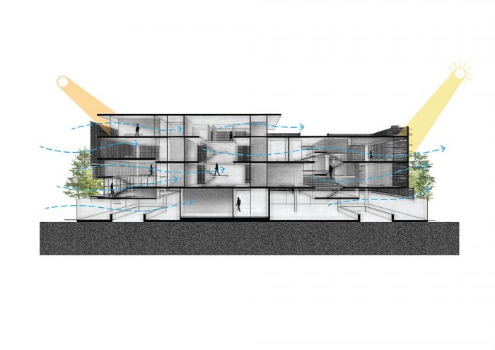 Imperfect is an important key for this design. By letting nature become a part of the design, the building allows other creatures such as birds or weeds to grow and live inside. Moreover, the boundary between the circulation part and zoning is blurred. Instead of having a clear separation between each section, the boundary is exploded, and space can be adjusted freely depending on the function.
