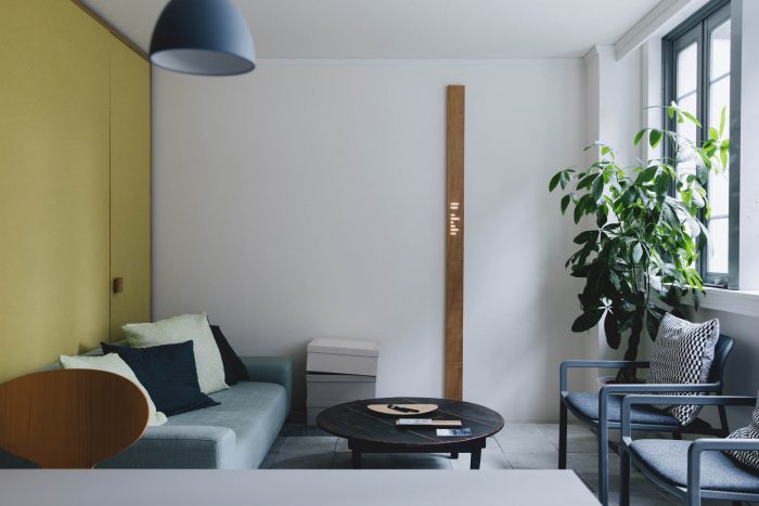 The products by mui Lab is a unique hybrid of technologies (sensing devices, mother boards, and touching panels, etc) and a natural materiality (wood). To develop such a hybrid, there are not any members with same knowledge and skills, creating a kind of contemporary craftsmen town in one firm. The design aims to spatialize this hybrid identity of the firm.