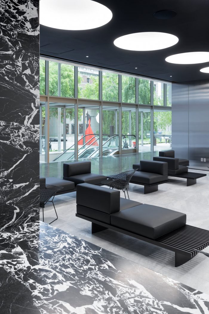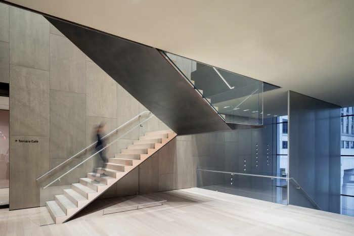 The architectural expression is a restrained conversation between the existing palette and new materials within The Museum of Modern Art. The design taps into the historic DNA of the building, relating disparate elements through a series of strategic interventions that reflect aspects of twentieth-century modernism: purity of material expression, the abstraction of space, and thinness. Synthesis is achieved with a minimalist use of materials which correlates with the existing building fabric.