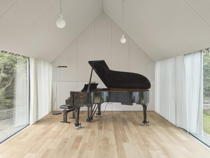 Building a space for music is one of the most beautiful tasks since sound is an ally to us architects: It needs plenty of air to expand and is sensitive to the surfaces of a space. In order to share this experience with others, the pianist started a small concert series called “Pavillon Bleu”.