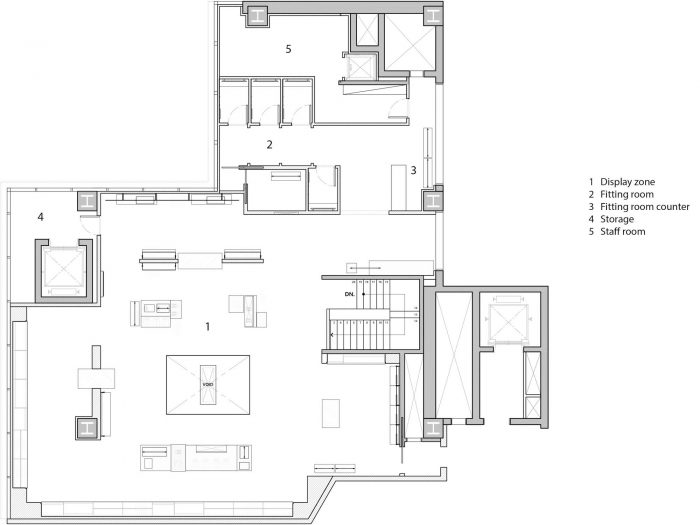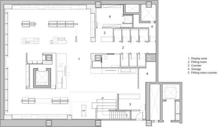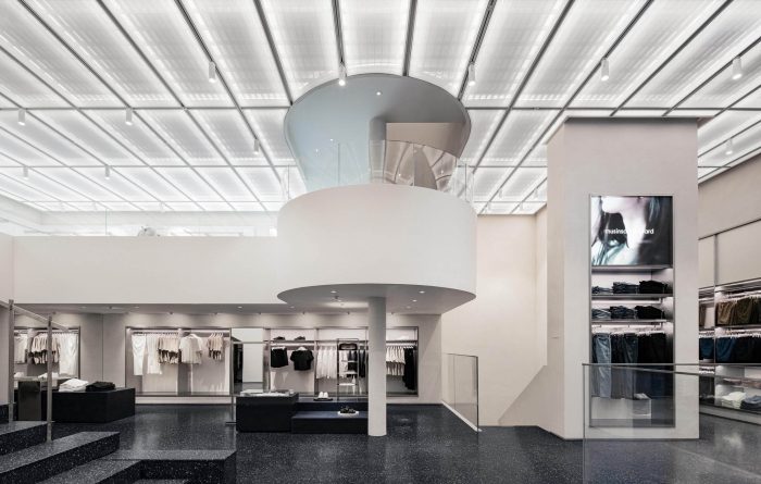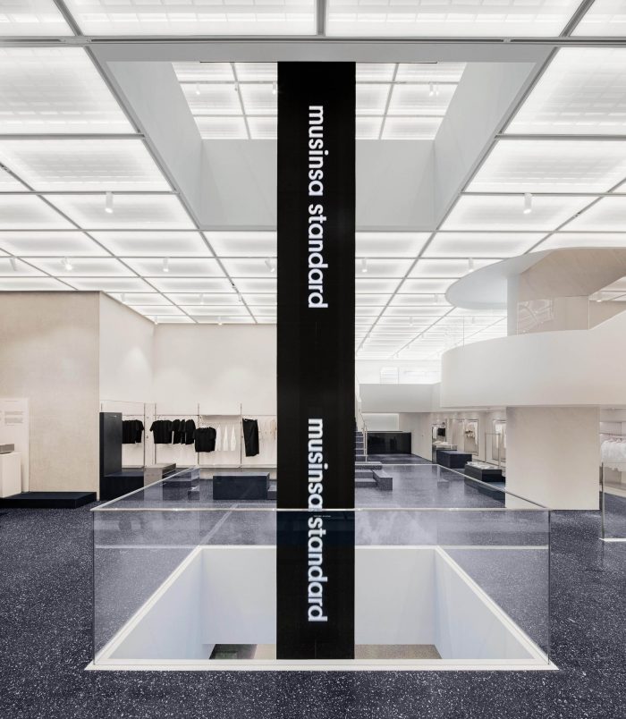 We Labotory settled a tagline “Tear down the time - break down time” for Musinsa Standard, as it interprets the spatial concept of timeless through past, present, and future in our own design language. Musinsa Standard Hongdae consists of 4 floors. The first basement floor to the second floor and the 1.5th floor in between. The circulation that starts on the first floor and leads to the present (first floor), and the future (1.5 floor), the present (second floor), and the first basement (past) is expressed as a narrative of the time.