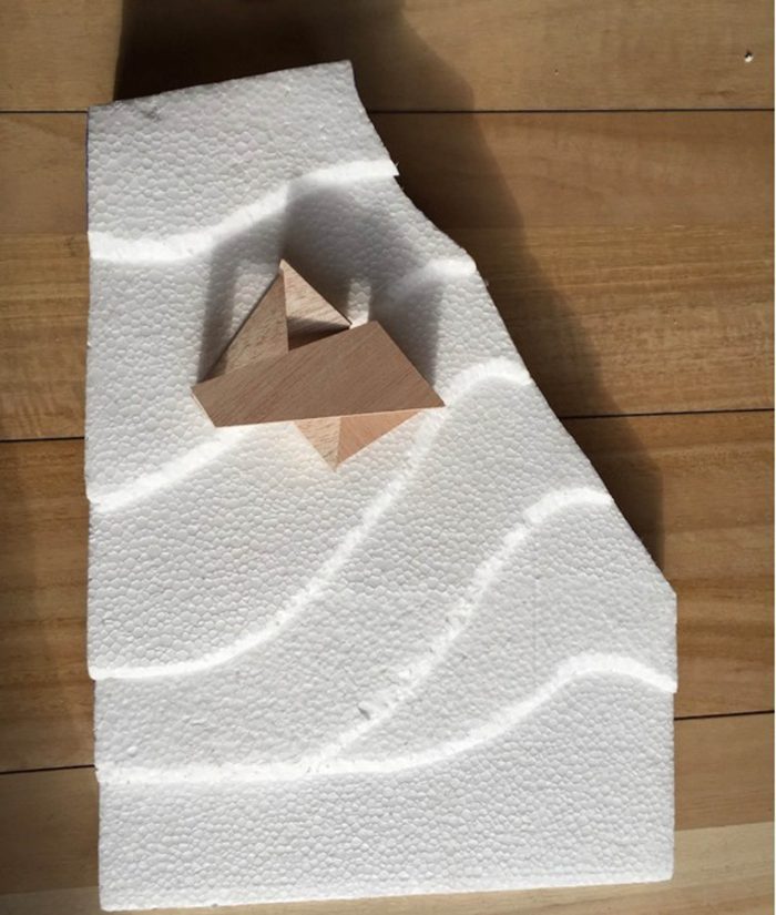 On the ground floor, the kitchen is integrated into the social area, which can accommodate an extra bedroom by moving a mobile partition. On the upper floor, there is the main bedroom that grows towards the two terraces, and a bathroom. Two double heights are located in the diagonals of the house, the first integrated to the social area, and the second to the staircase.