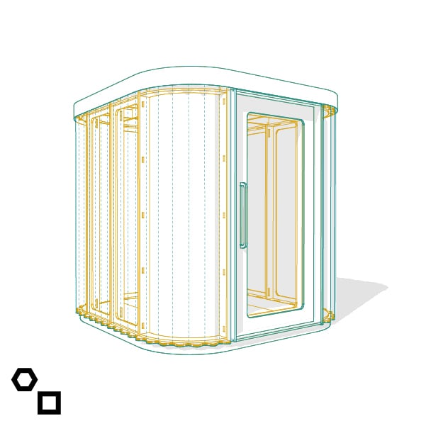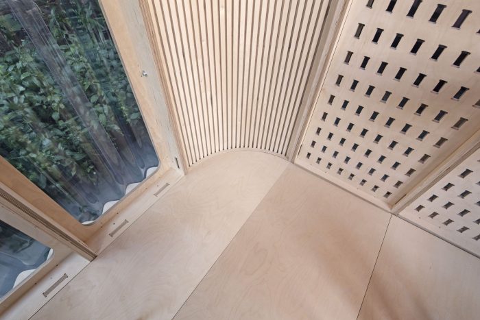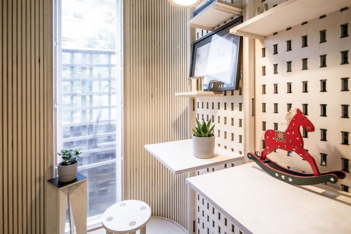 The standard finish includes corrugated clear polycarbonate cladding that protects the interior space from the elements and allows for natural light to flood the internal space. The wall modules can host different finishes such as peg wall, mirror, plain or decorated wood, etc. The user can compose the interiors to their taste and need. The higher-spec version includes insulated wall/roof/floor panels and glass door/windows. Sustainability Each component of the home-office pod is geometrically efficient and minimizes any material waste. The dimensioning of each component is based on human dimensions and standard material dimensions. The whole project is designed, manufactured, and pre-assembled in the UK.