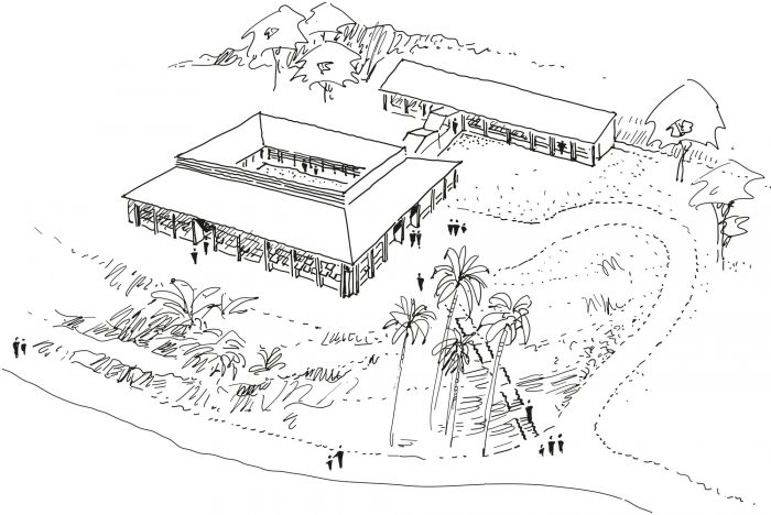 村庄一侧远离大海的一座小山被选为新建筑的地点。由于位置较高,该建筑在热带风暴和海啸期间也是安全的避难所。a+r Architekten开发了一个单层的中庭房屋,作为主楼。遮蔽的内院是该建筑的核心;它既是一个休息区,也是一个公共空间。围绕它的是病人房间、治疗和工作人员房间以及药房。为了最大限度地减少疾病的传播,等候区设在室外。具有独特的单坡屋顶的直线型侧翼通过一个凉棚进入。它容纳了一个隔离病房,并为传染病人提供了额外的房间,还有厨房--用于自炊,这在缅甸很常见--以及储藏室、盥洗室和卫生设施。