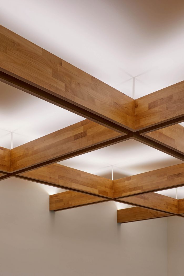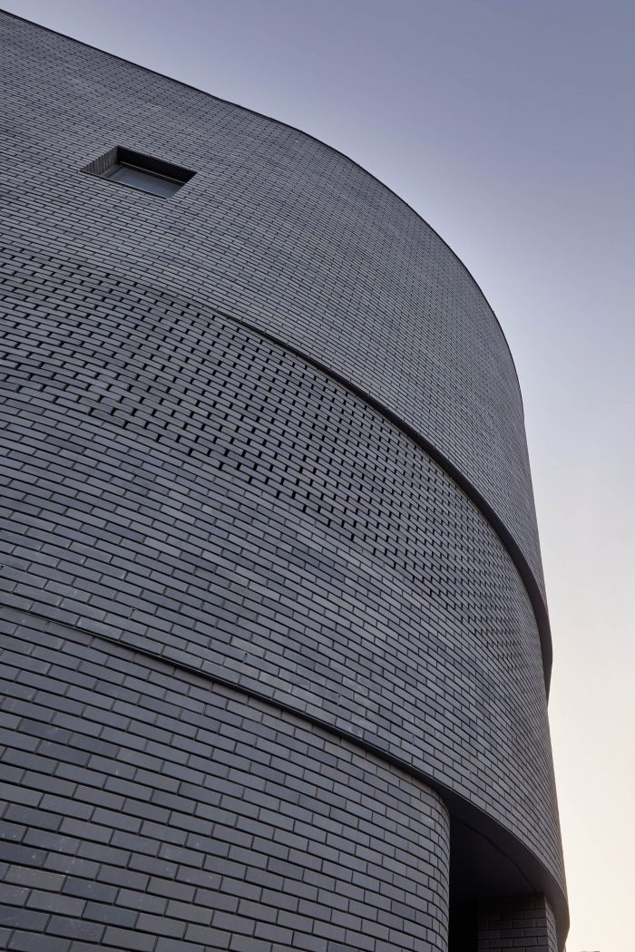 开合的深度和密度--封闭的面有选择地以不同的深度和密度打开。北墙有不同的厚度,以根据内部使用情况改变窗户的深度。包含松树林的起居室的窗户开得最深、最广。私人区域的大窗户主动让光线进入,对深度的理解很浅。连接各层的楼梯的形状可以根据上下楼梯的方向逐渐打开和关闭。这种砖块的叠加使得立面在里面是宽阔的,可以接受光线,同时在外面又是封闭的,避免了人们的凝视。