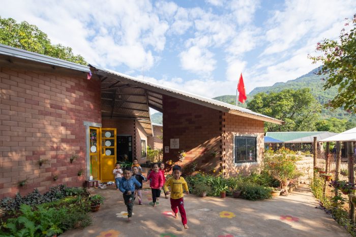 The Elementary part of the Na Khoang school is arranged along lines - side corridors, and the preschool part is arranged in clusters - middle corridors, connected with each other by a common-use stone stage, in harmony with the terraced fields.