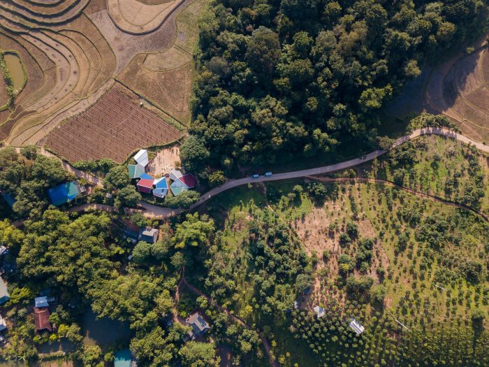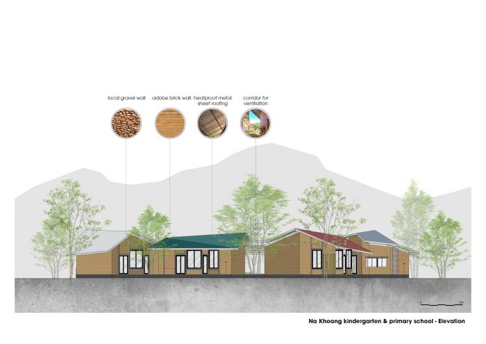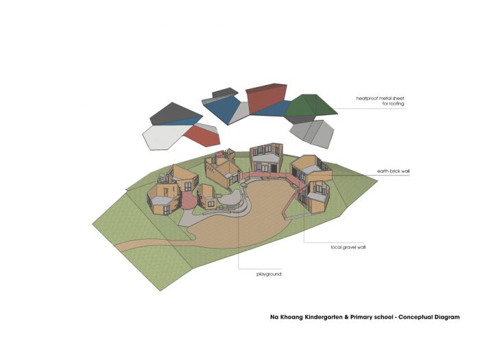 Na Khoang School is located in the middle of a village of a Thai ethnic group - where there is a rich and diverse cultural lifestyle and community activities. Inspired by the design of flowers between the mountains and hills, each roof has a different inclination like a diverse - rhythmic dance.