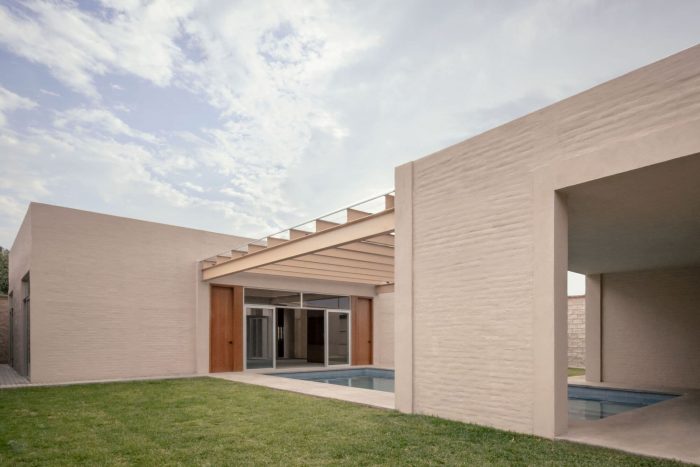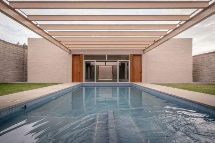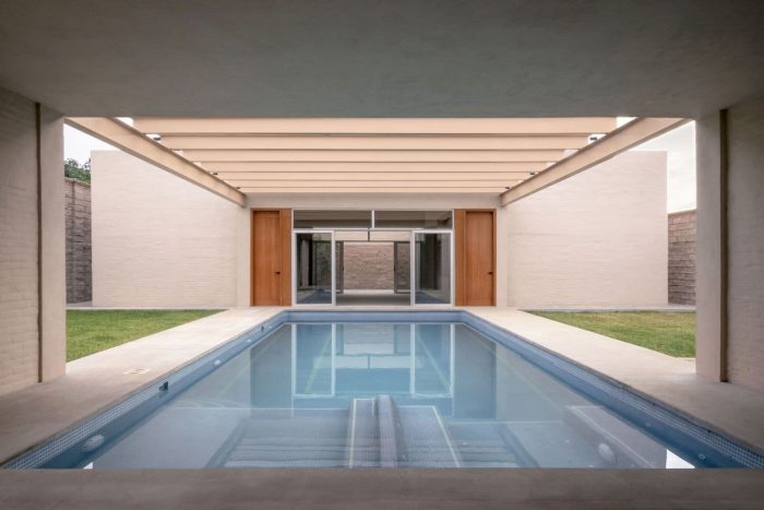The second volume is made up of a terrace space with its corresponding services, which coexists directly with the landscaped spaces and the pool. Casa Naranjo is developed with the concept of a house patio, where the orientation, materiality, and distribution allow the user to climb into their ritual of experience.