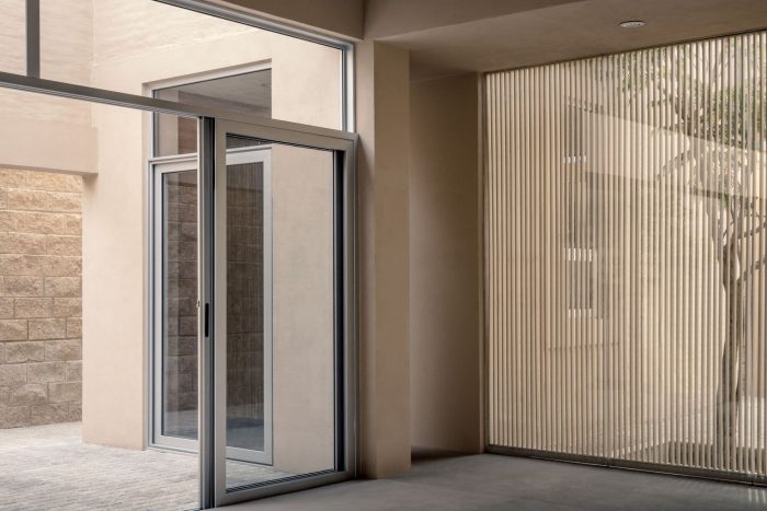 外立面由一堵墙组成,包含了行人和车辆的入口,这些是唯一的开口,分别与外部共存,创造了一种封闭性的感觉。然而,一旦进入,被分割的体量就开始显现。