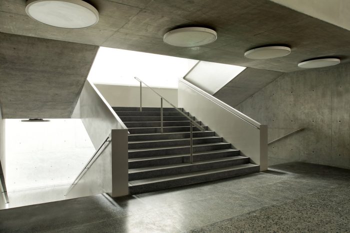 垂直空隙用天顶光照亮,其强度由机械百叶窗控制,允许不同的照明条件,以满足不同时间的展览。该建筑的结构灵活性不仅是展览空间的特点,也是实验室和存储空间的特点;这些位于建筑四面的空间可以作为大空间使用,也可以根据这些活动的计划被分割成小房间。