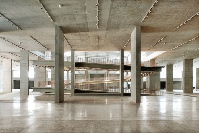 The infrastructure builds physical conditions without barriers for seamless encounters between researchers, workers, and visitors- creating a platform for the exchange of knowledge intended for a larger Regional context. The architecture of the Museum proposes a system of spatially open and horizontal platforms vertically interconnected by a large 25m x 25m x 25m skylit void. A wide ramp at the perimeter of this flexible non-programmatic space connects the temporary exhibition spaces at the entrance level to the main museum exhibition area underground.