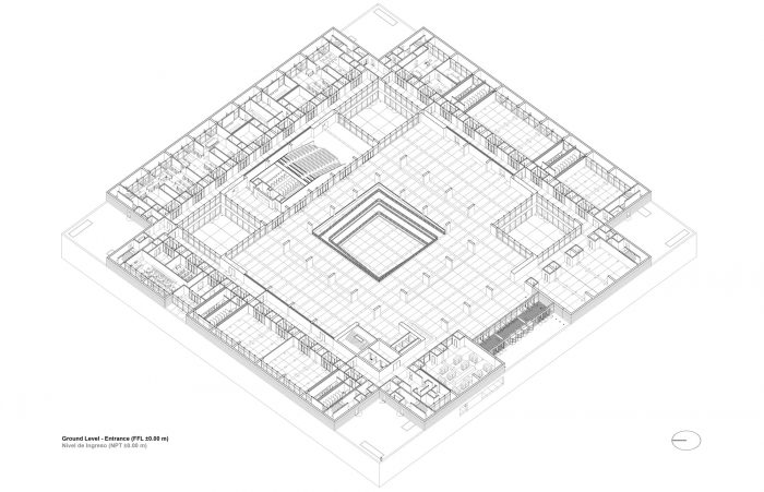 Muna is conceived as a new Andean “kancha”, an infrastructure that integrates both ancient and contemporary landscapes; the Museum inscribes a flexible 126m by 126m quadrangular with a large interior void- a clear and compact volume in the existing arid hollow of this specific desert landscape.