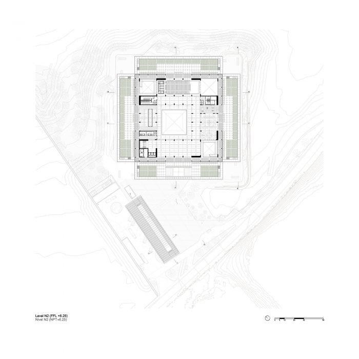 Visually this space connects all the exhibition spaces with the social activities above--a place for installations and temporary interventions. Likewise, the landscape project for the building’s second level and surroundings of native and local vegetation offers an ecosystem for improvised activities. The generous and open structure of the MUNA is essential if it is to offer the possibility of developing multiple museologies and museographies over time. In this way, the museum plays a fundamental cultural role in the development of our contemporary national identity as connected to Peru´s historically varied landscapes- a project which includes our diverse identities for a collective sustainable future.