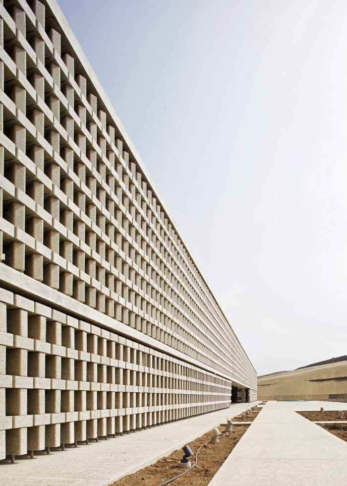 穆纳被设想为一个新的安第斯 "坎查",一个整合了古代和当代景观的基础设施;博物馆刻画了一个灵活的126米乘126米的四角形,有一个大的内部空隙--在这个特定的沙漠景观的现有干旱的空地上的一个清晰和紧凑的体积。