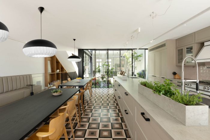 Architect Meirav Galan designed the “Neve Tzedek Patio House” located in the historic Neve Tzedek neighborhood of Tel Aviv. The townhouse, of which the extension and preservation were completed in 2020, was one of the first houses built in the picturesque neighborhood at the end of the 19th century and was originally built as a one-story house with a flat roof. During the 1930s, the house was extended and architecturally redesigned, adding a second floor with a tiled roof, a gallery balcony, and exterior stairs. With the passage of time, the beautiful house suffered from neglect. However, it was recently sold to its new owners, a family of six.