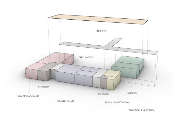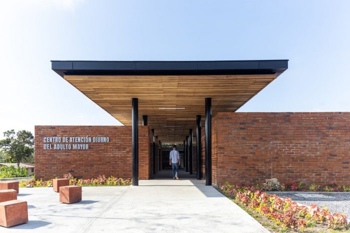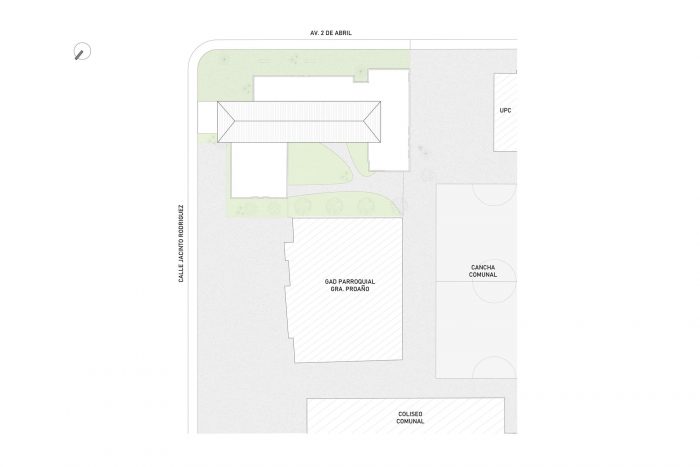 The facility is a single level structure which facilitates safe and comfortable use by the elderly clients. It is made up of a medical and dental office, a multipurpose room and workshop, an administrative area, a kitchen and dining room for 40 people, bathrooms and warehouses. The project is located on a communal property belonging to the municipality, where several public buildings of different uses had already existed. The U-shaped design of the new structure incorporates these preexisting structures with their related services. The new Day Center for The Elderly and the existing building that houses the headquarters of the Autonomous Government of Proaño surround an interior patio that receives visitors as soon as they cross the entrance door. The patio acts as a space for contemplation and recreation.