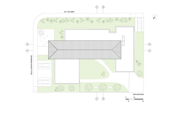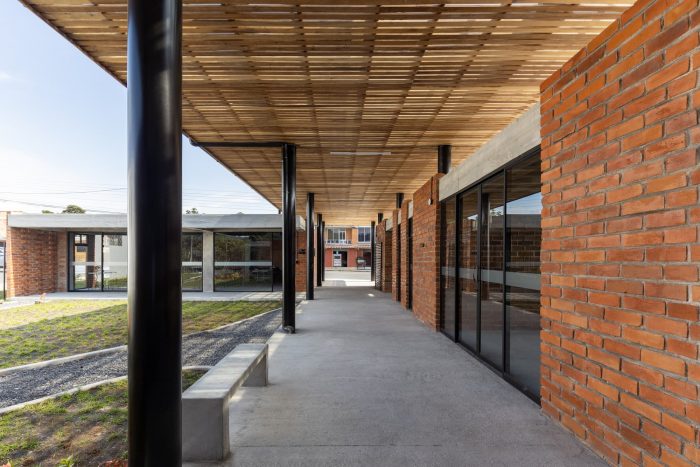 体量的布局使建筑本身成为公共和私人区域之间的界限,为里面的人提供安全和保护,反过来,也邀请路人在前面的广场上进行。另一方面,屋顶的设计灵感来自于周边地区的屋顶,标志着入口并突出了每个独立区域。 拟议的建筑是诚实的、朴素的和真实的,确保每种材料都有自己的表达形式,当它们结合在一起时,它们设法重新解释当地的建筑及其材料。