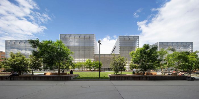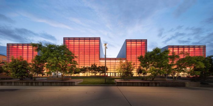 The project places the performance halls at the heart of the volume, with an articulation of the programs that generate a unique cross-section, thus giving the building its identity. Circulation spaces, public and private, are located on the façades surrounding the programs to which they give access.