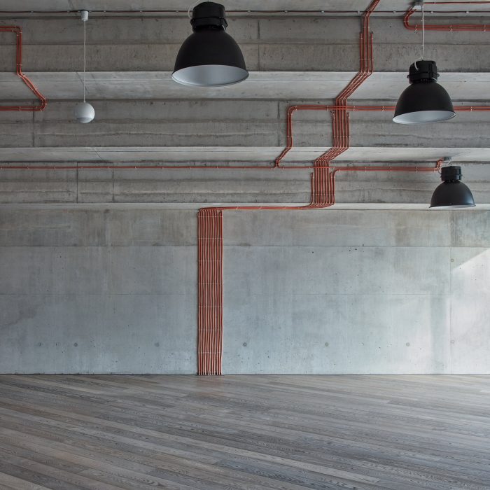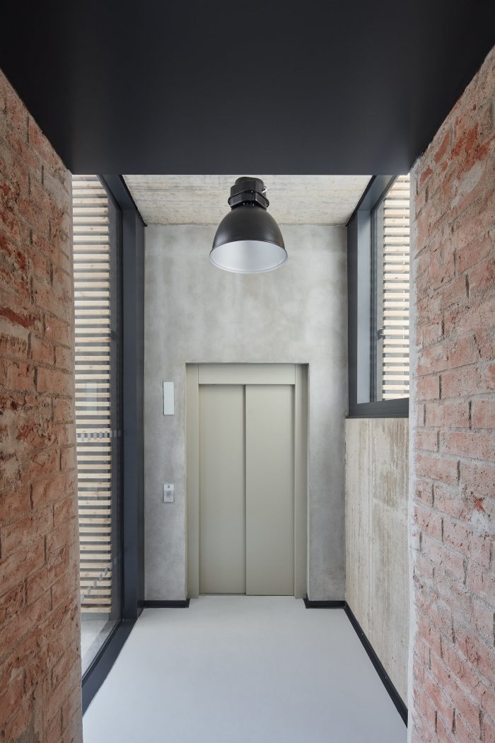 In contrast to the auditorium is a reconstruction of the original part of the historical pentagon, which was formally a court with a prison. Strictness, firm order, rigidity, and oppressive atmosphere were clearly evident at the beginning of the undertaking and the authors were fully aware, that the premises will newly serve young people with an open mind on their way to higher education. The motto became a colorful, inspiring, and non-conforming environment, preserving the historical footprint. The traditional materials are in a visible, original form; the industrial character is fully linked to the auditorium. A sole chapter was the discovery and the engagement of historical footprints, return of the original ceramic floor or stone sills with traces of bars, which make for a great experience in the interior.