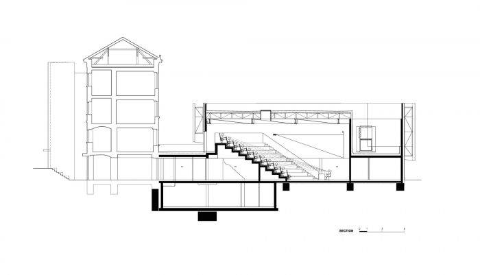 The new auditorium of VŠPJ is a modern concept of dynamic contemporary architecture with industrial elements in a minimalist style in direct contrast to the original site and its newly reconstructed part of the northeastern wing. The whole area is easy to navigate and today, thanks to the enlightened leadership of the institution, is open not only to students and educators but also to its surroundings, fully in accordance with the philosophy of the modern college VSPJ.