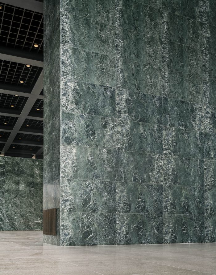 The necessity of an extensive repair of the reinforced concrete shell and the complete renewal of the technical building services required an in-depth intervention. In order to expose the shell construction, around 35,000 original building components, such as the stone cladding and all the interior fittings, were dismantled. After their restoration and modification where necessary, they were reinstalled in their precise original positions.