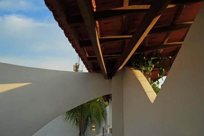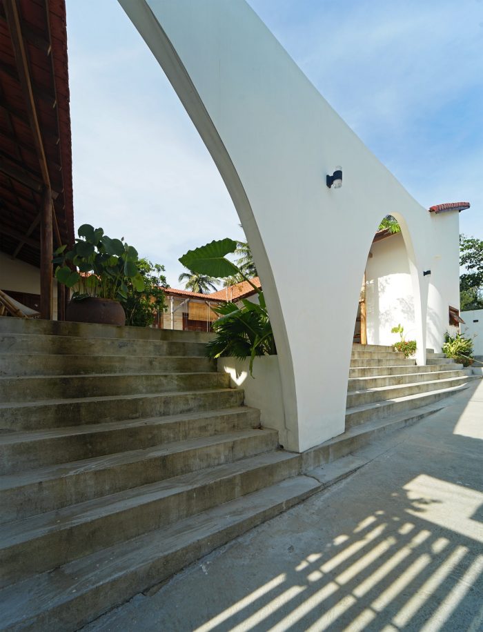 The continuous shapes that cover the land are arranged densely and hollowly to take advantage of the cool air from the sea. Besides, the beautiful light also creates contrasting spaces and points, which highlights the work.