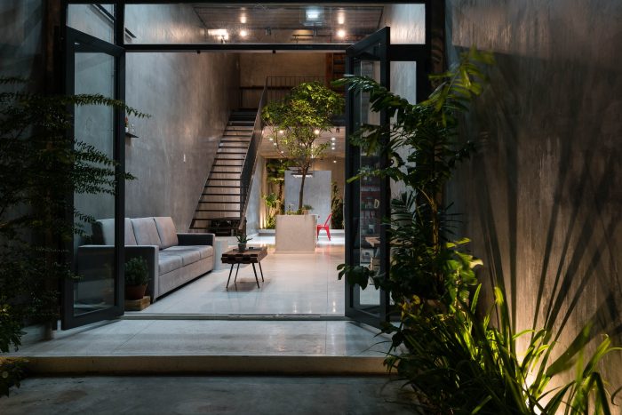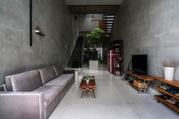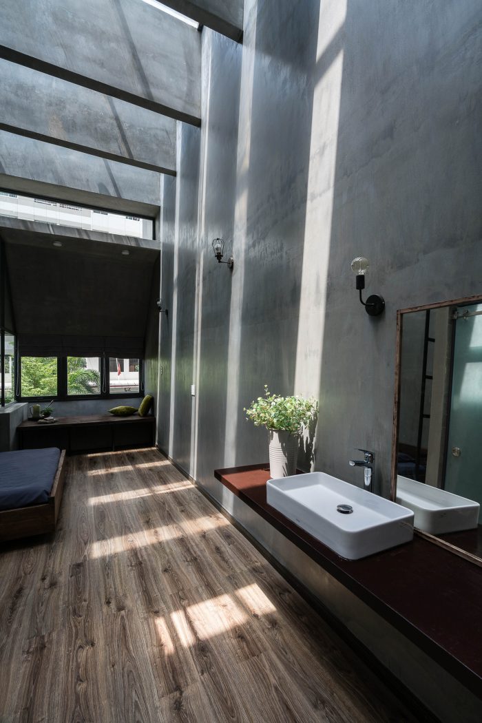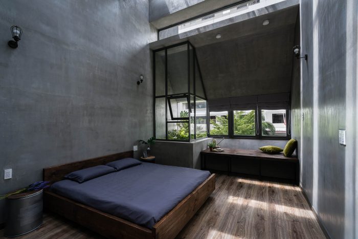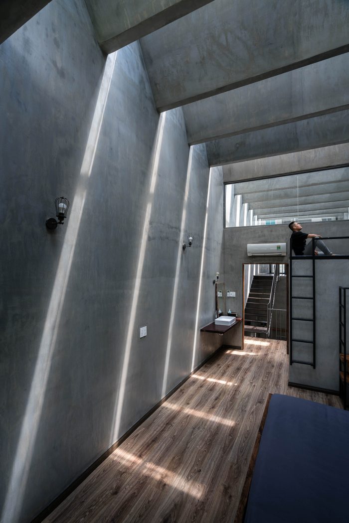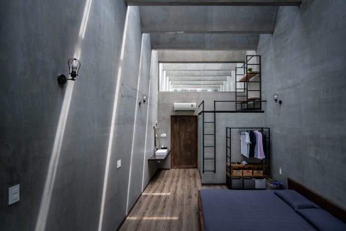 Space was created continuously, not separated by walls or stairs. The spaces were connected by the language of natural light. Bring people closer to the surrounding environment. The open space has a larger volume than the closet space - the bedroom.