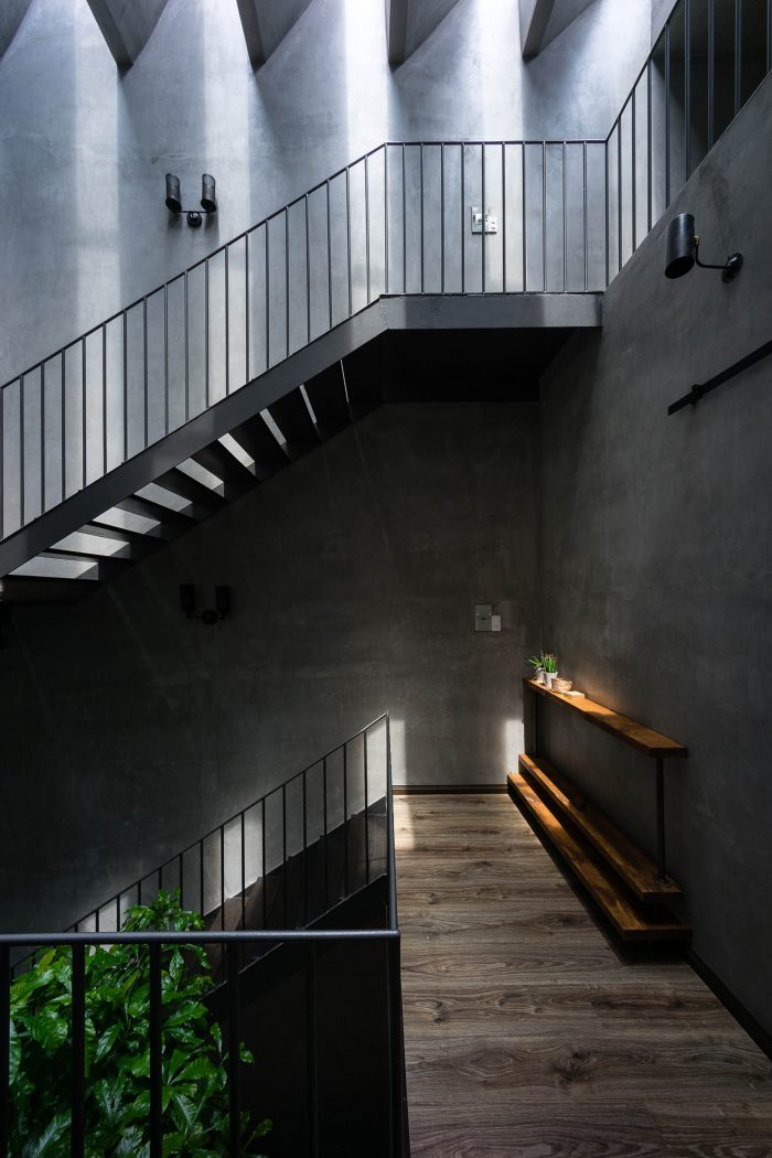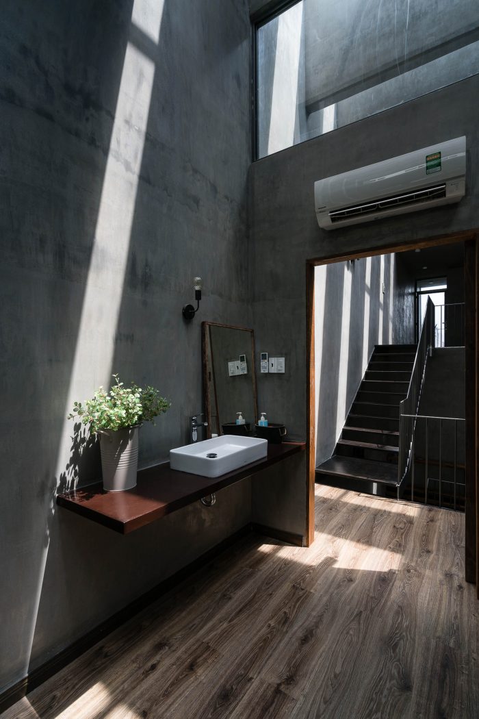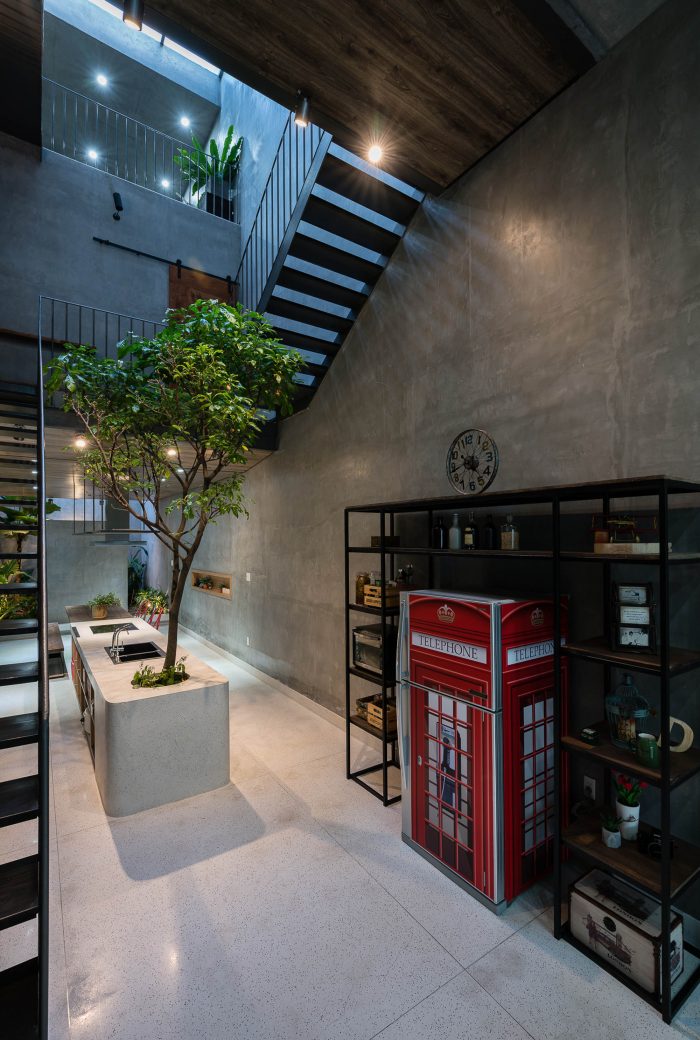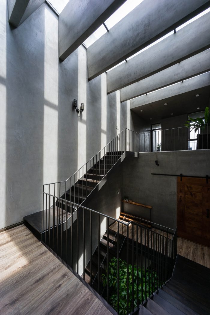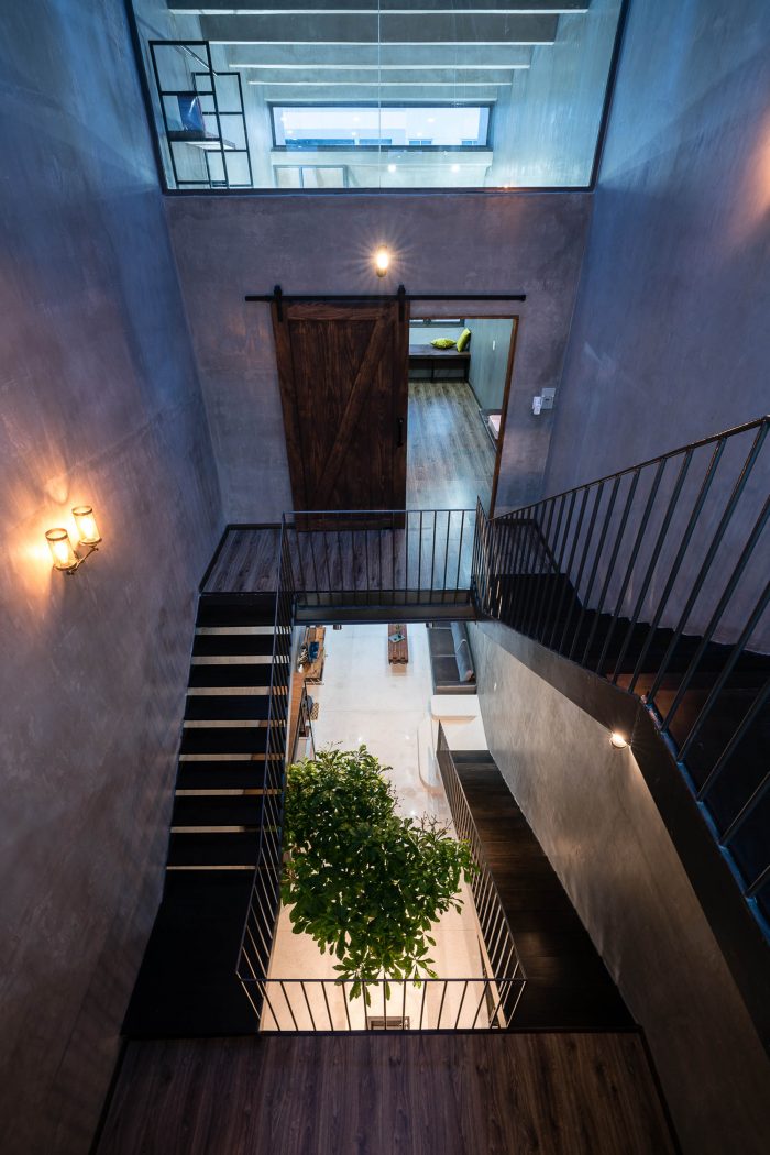 We started designing with new and open minds. We pay attention to the public spaces of a house, rather than the kitchen that is clearly divided by the dinner table or partition. We extended the kitchen and connected it to the dinner table, which was placed in the vertical position of the house. The kitchen becomes a major space, extends the public space of the house. The master bedroom is opened with glass panels on the front. In a new way, we want to create a view in the space of the room. We decided to create the gaps – “ khoảng trống ” directly from the roof, which creates views that look at the sky at night, which will be used to light the day. To solve the “khoảng trống” optimally, we use quadrilateral crossbars, and the sides are inclined in the opposite direction of light from time to time. Space is filled with light and “khoảng trống”.