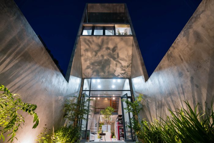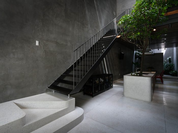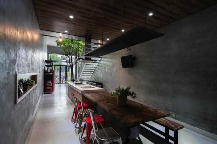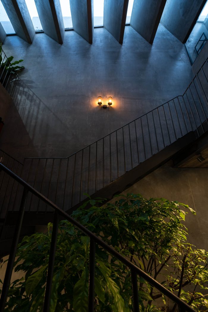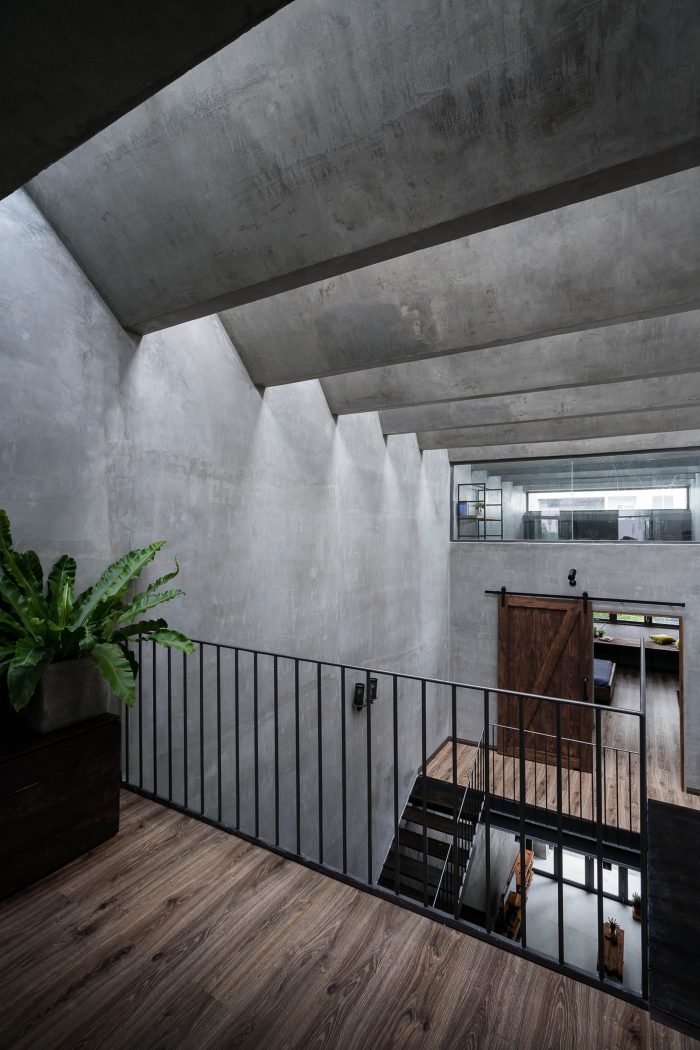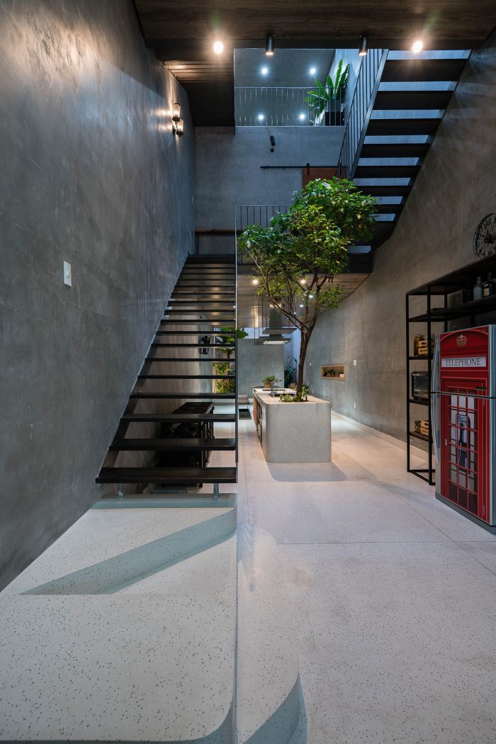 We started designing with new and open minds. We pay attention to the public spaces of a house, rather than the kitchen that is clearly divided by the dinner table or partition. We extended the kitchen and connected it to the dinner table, which was placed in the vertical position of the house. The kitchen becomes a major space, extends the public space of the house. The master bedroom is opened with glass panels on the front. In a new way, we want to create a view in the space of the room. We decided to create the gaps – “ khoảng trống ” directly from the roof, which creates views that look at the sky at night, which will be used to light the day. To solve the “khoảng trống” optimally, we use quadrilateral crossbars, and the sides are inclined in the opposite direction of light from time to time. Space is filled with light and “khoảng trống”.