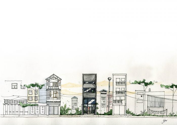 The house is a conversation between the owner and the architect. We start the story in a simple way, looking for new values in the living space. A host is a young man, living with his mother. They have an open mindset over others. They demand an open space, a comfortable lifestyle. The son asks for a room that can be opened to the maximum, with clear views towards the front where he can create and make a small studio attached to his living space. His mother asked us for a large space for the kitchen - the host regularly welcomed the guests at the weekend, although the house is only 4 meters wide.