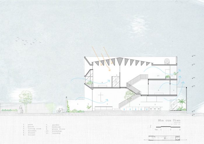New lands of the city are gradually filled by urbanization. In the process of development, old architectural forms become obsolete. Vietnamese - tube house is one of the typical examples, the repetitive construction, which takes away the living space in the house. Interacting with the owner, motivating and toward better space values. How to build new spaces, contributing to change human thinking in the space of living. The shortage of large space in the city, people are gradually narrowed in backward tube houses.